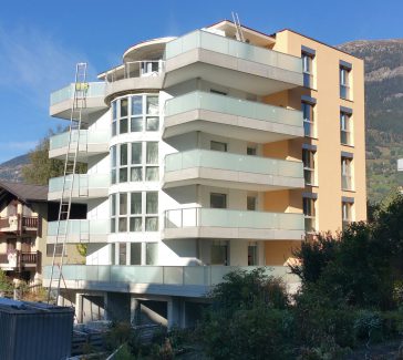 Baustelle MFH Glismatta in Glis Aussendämmung Maler- und Gipserarbeiten Trockenbau